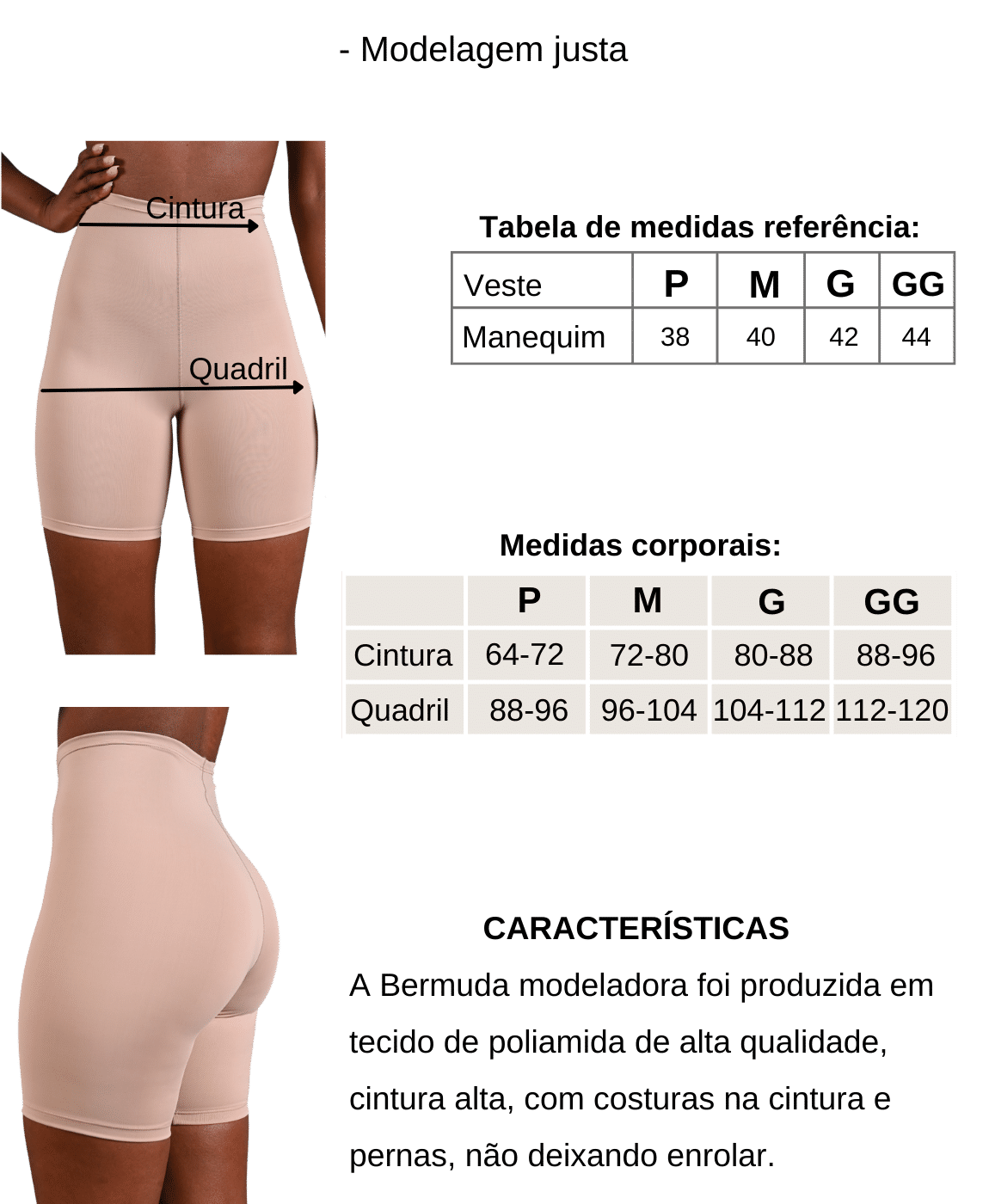 A bermuda modeladora foi desenvolvida para proporcionar conforto e segurança ao ser vestida, modelando a silhueta de maneira confortável. Fabricada em tecido de poliamida de alta qualidade, possui costuras na cintura e nas pernas que asseguram que não irá enrolar. Ideal para quem deseja usar com peças sem marcar a lingerie.