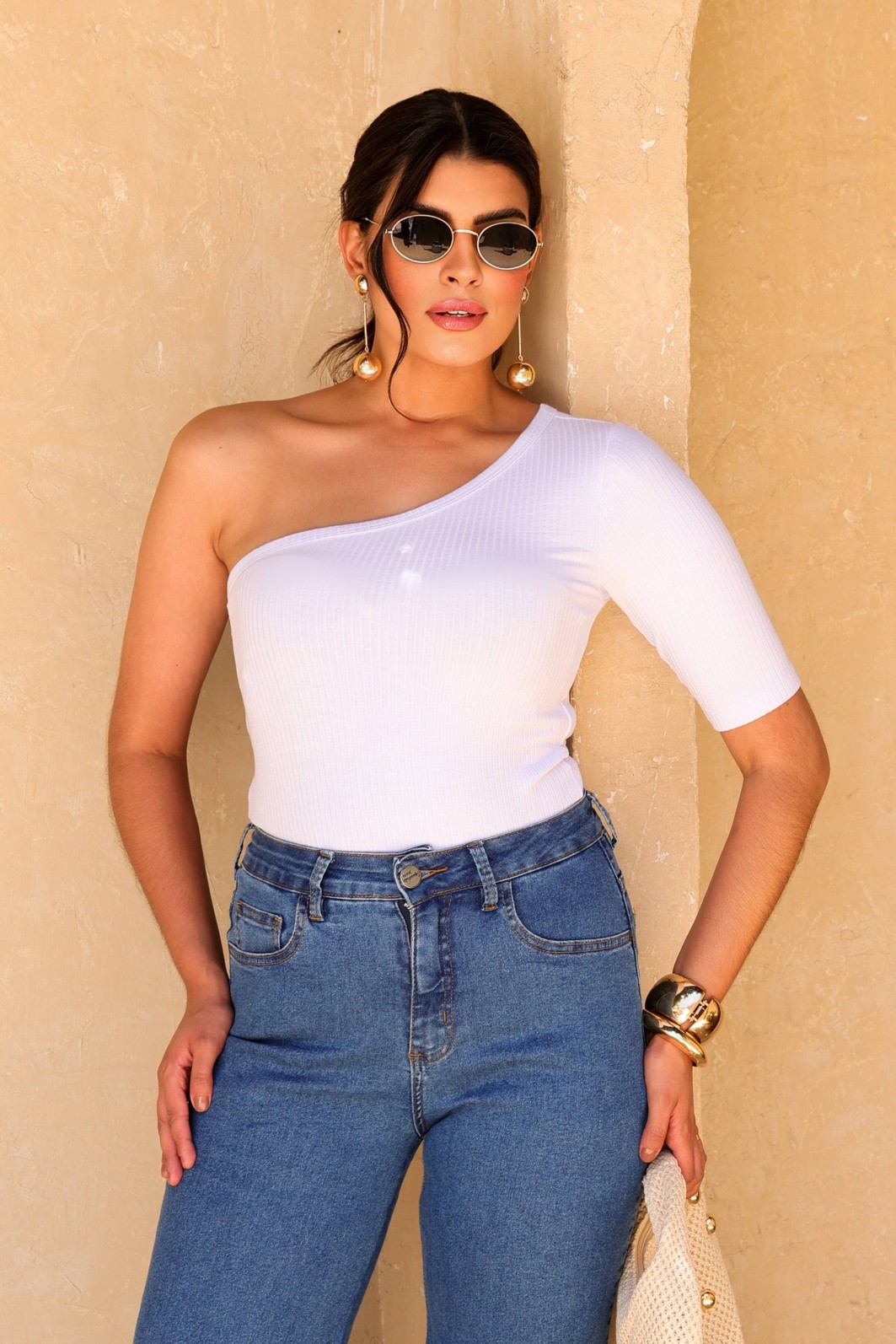 A Blusa de Manga Única é moderna e cheia de estilo. Com modelagem ajustada ao corpo, ela conta com manga 3/4 em um dos lados, criando um visual assimétrico e sofisticado. O decote possui acabamento em viés e o comprimento levemente abaixo do cós garante um comprimento confortável. Ideal para produções modernas e cheias de personalidade.