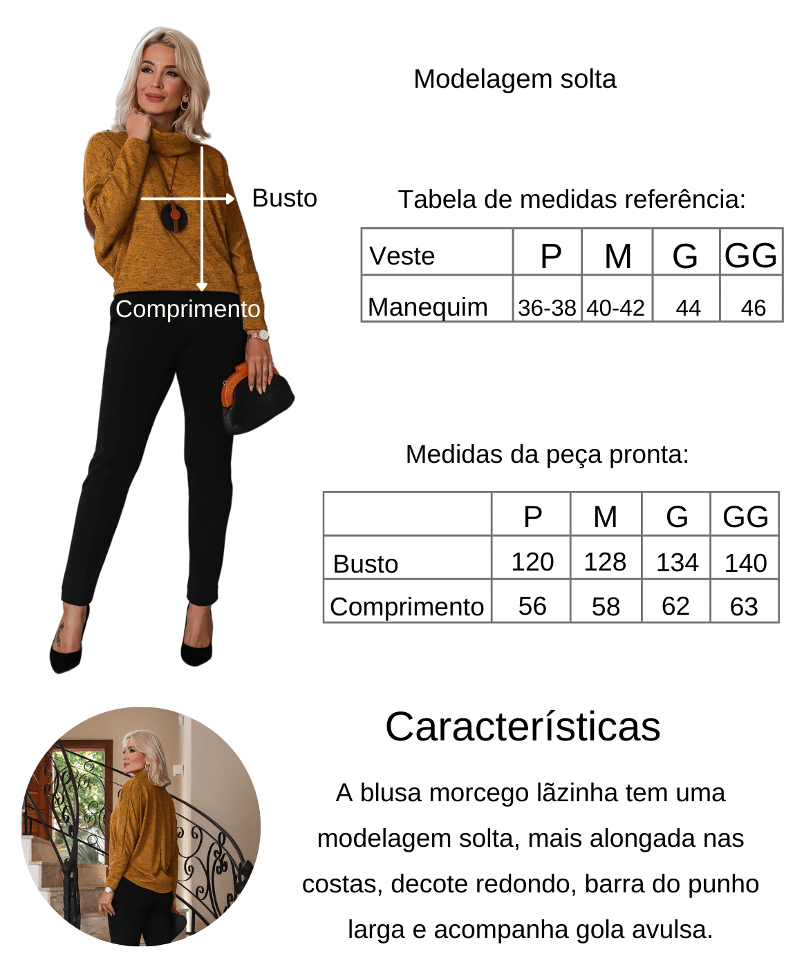 A Blusa Morcego Lãzinha é perfeita para adicionar um toque de charme e conforto ao seu look. Com uma modelagem soltinha e mais longa nas costas, decote redondo e barra do punho larga, essa peça é ideal para os dias mais frios. E o melhor de tudo é que ela ainda vem com uma gola avulsa para você se proteger.