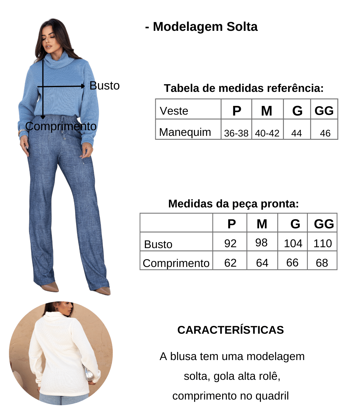 A blusa de tricô é o item perfeito para adicionar um toque de estilo e conforto ao seu guarda-roupa. Feita com um material macio e aconchegante, ela proporciona um caimento impecável. Com uma gola alta, essa peça é ideal para os dias mais frios, mantendo você aquecida sem perder o estilo.