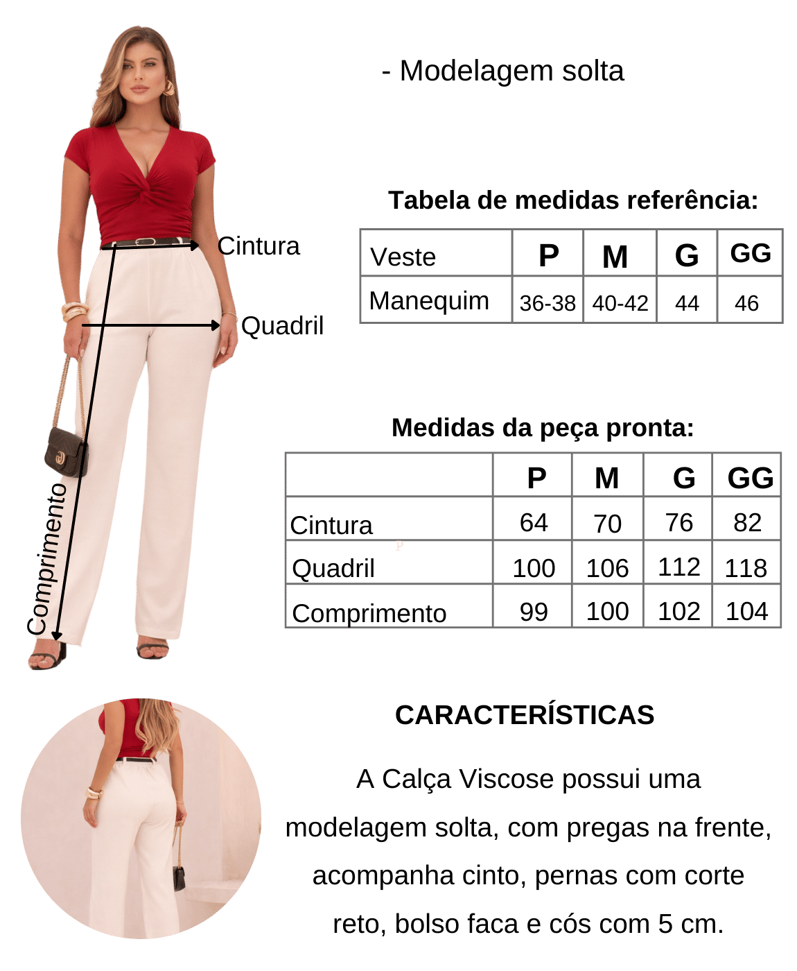 Calça Viscose foi projetada com uma modelagem solta e pernas de corte reto, criando um movimento fluido e uma silhueta alongada que transita facilmente entre o casual e o formal.