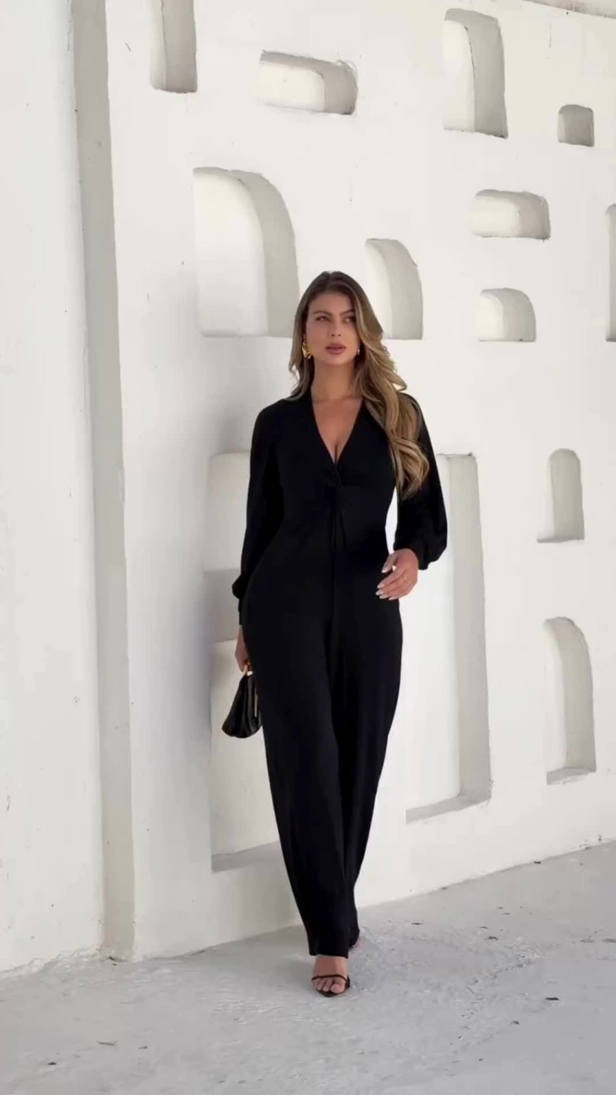 Elegante e moderno, o macacão possui modelagem que valoriza a silhueta com conforto. O destaque fica por conta do busto com nó, que cria um efeito drapeado sofisticado. Com mangas longas e caimento fluido, é confeccionado em viscolycra, garantindo toque macio, elasticidade e ótimo ajuste ao corpo. Uma peça versátil, perfeita para produções do dia à noite com estilo.
