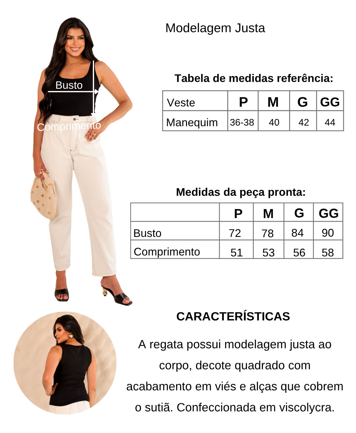 A regata em viscolycra preta é aquela peça essencial que combina conforto, estilo e versatilidade. Confeccionada em tecido suave, com excelente caimento e toque macio, ela se ajusta ao corpo de forma natural, proporcionando bem-estar durante todo o dia. Com decote arredondado e modelagem clássica, é perfeita para compor desde looks casuais até combinações mais elegantes. Use com jeans, alfaiataria, saias ou shorts, a peça se adapta a qualquer ocasião.
