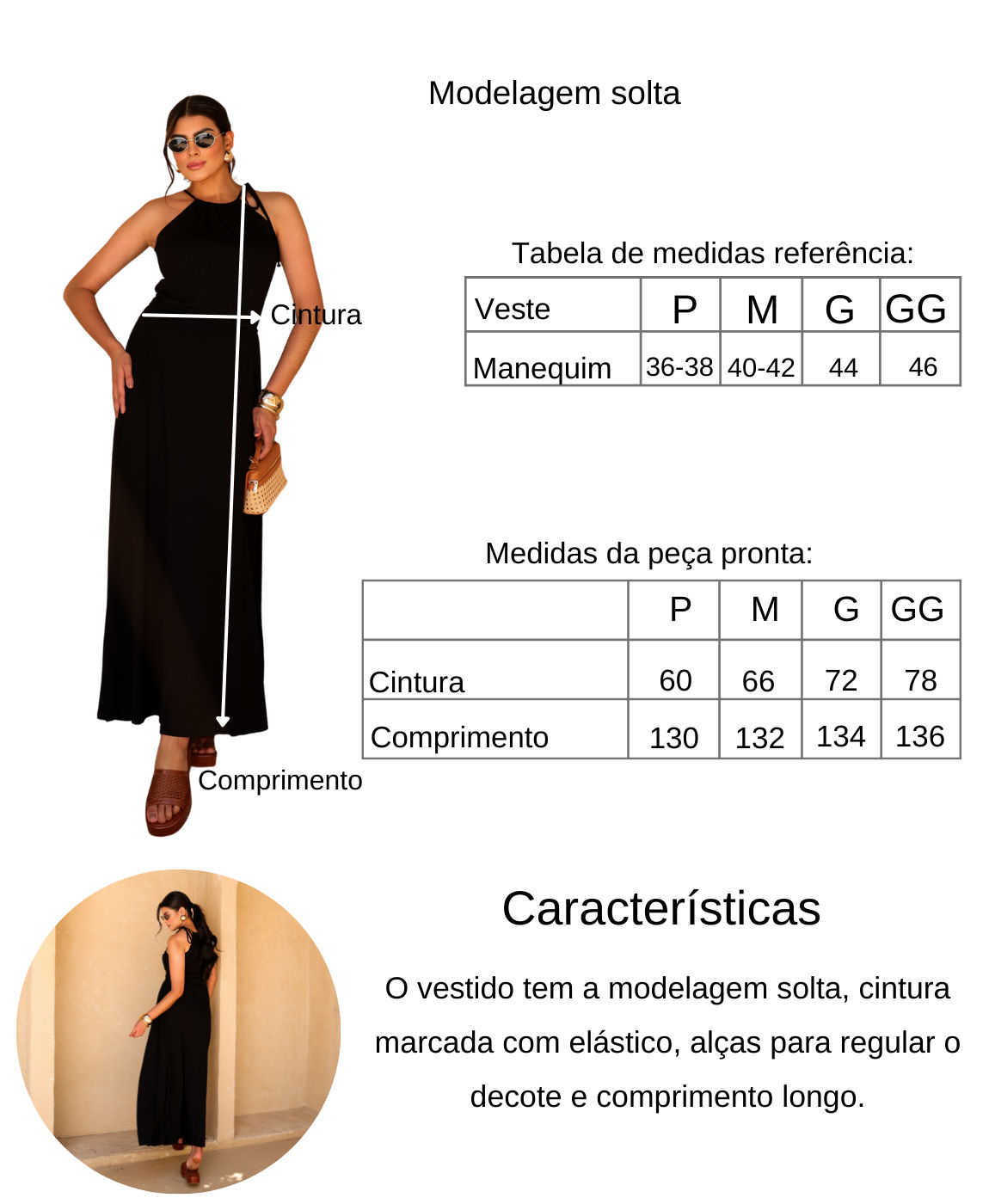 O Vestido Cava Americana foi projetado para proporcionar conforto e estilo, com uma modelagem solta, cintura marcada por elástico, alças ajustáveis para regular o decote e um comprimento longo. O Vestido Cava Americana é ideal para quem busca um look casual e despojado.